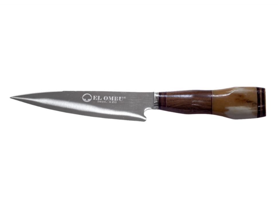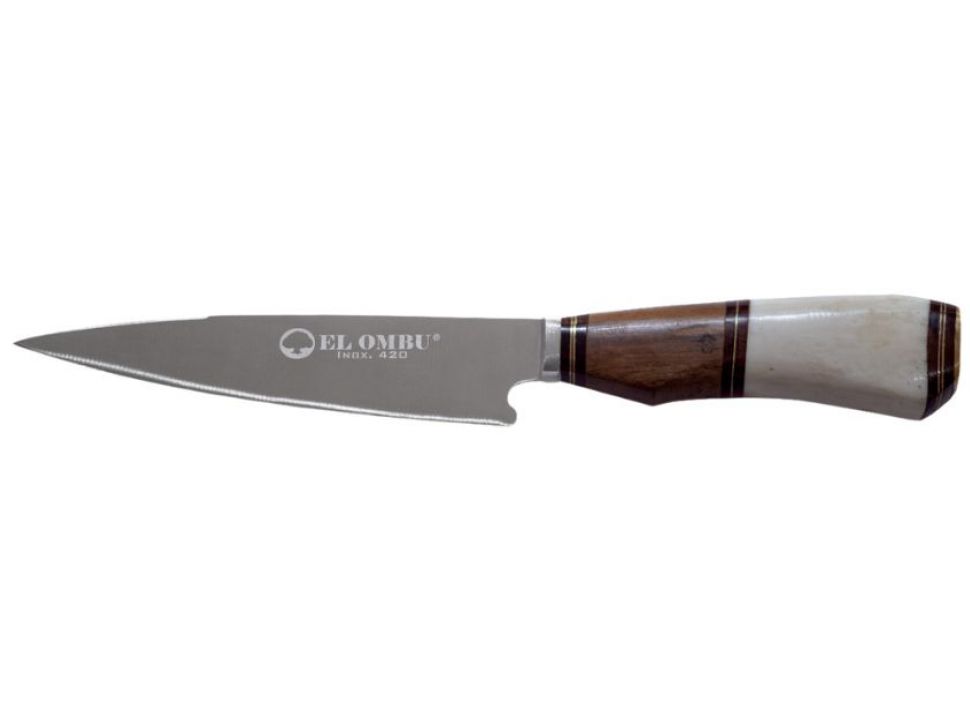 cuchillo con hoja de acero inoxidable 440 , cabo artesanal realizado en madera combinada con hueso y vaina de vaqueta